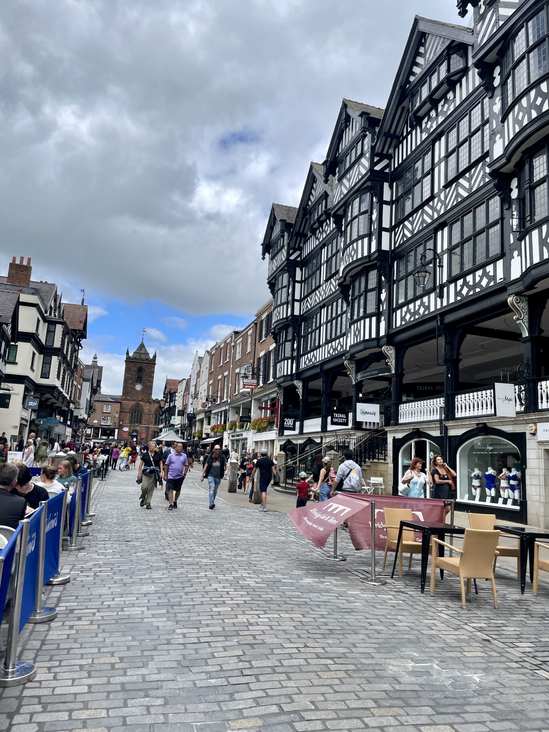 We left The Lake District and on the way to The Cotswolds stopped over for a couple of hours in Chester. Chester is famous for its’ black and white buildings, the Rows – medieval two tier buildings which today house shops, galleries and restaurants.