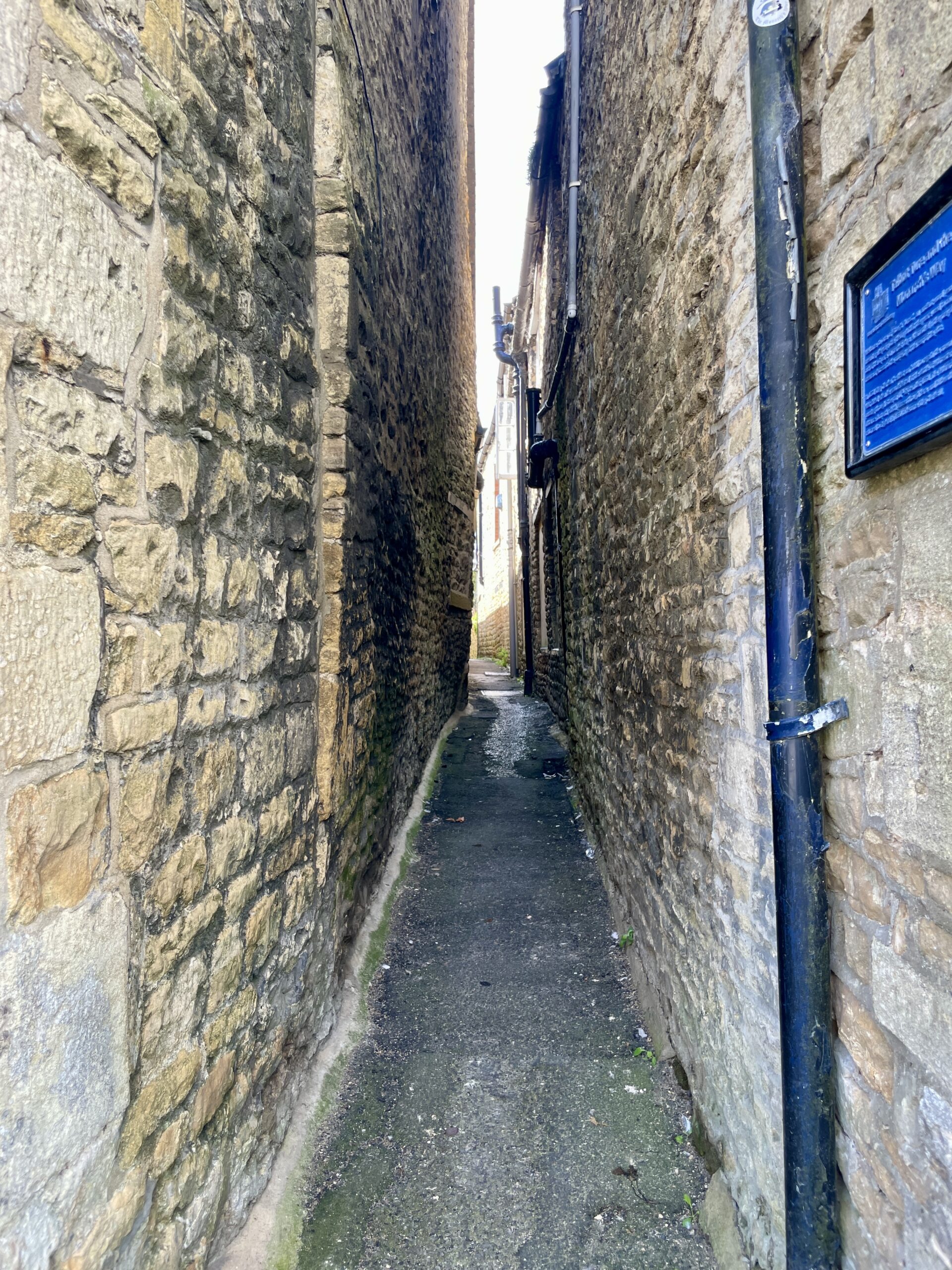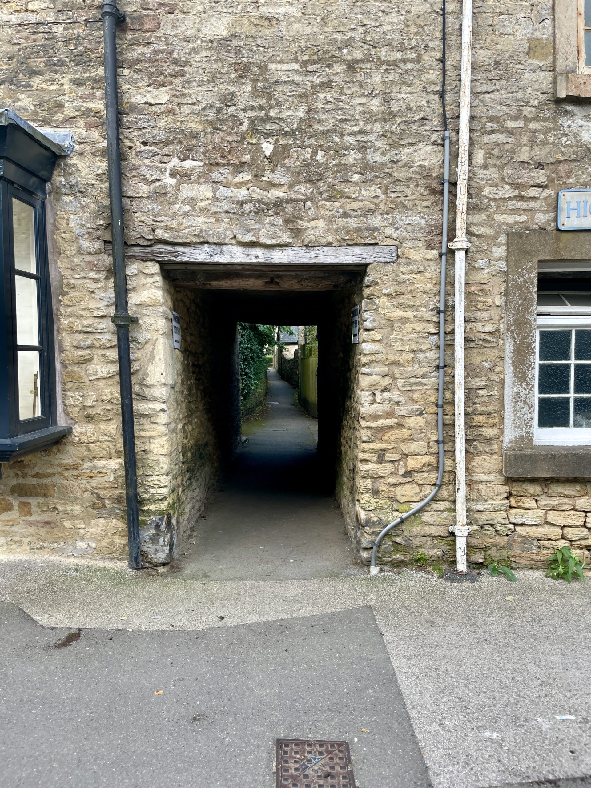 Stow on the Wold is a market village predominately for the sale of sheep. There are several narrow alleys around the market square which were used soley to bring and take  sheep from the market square .